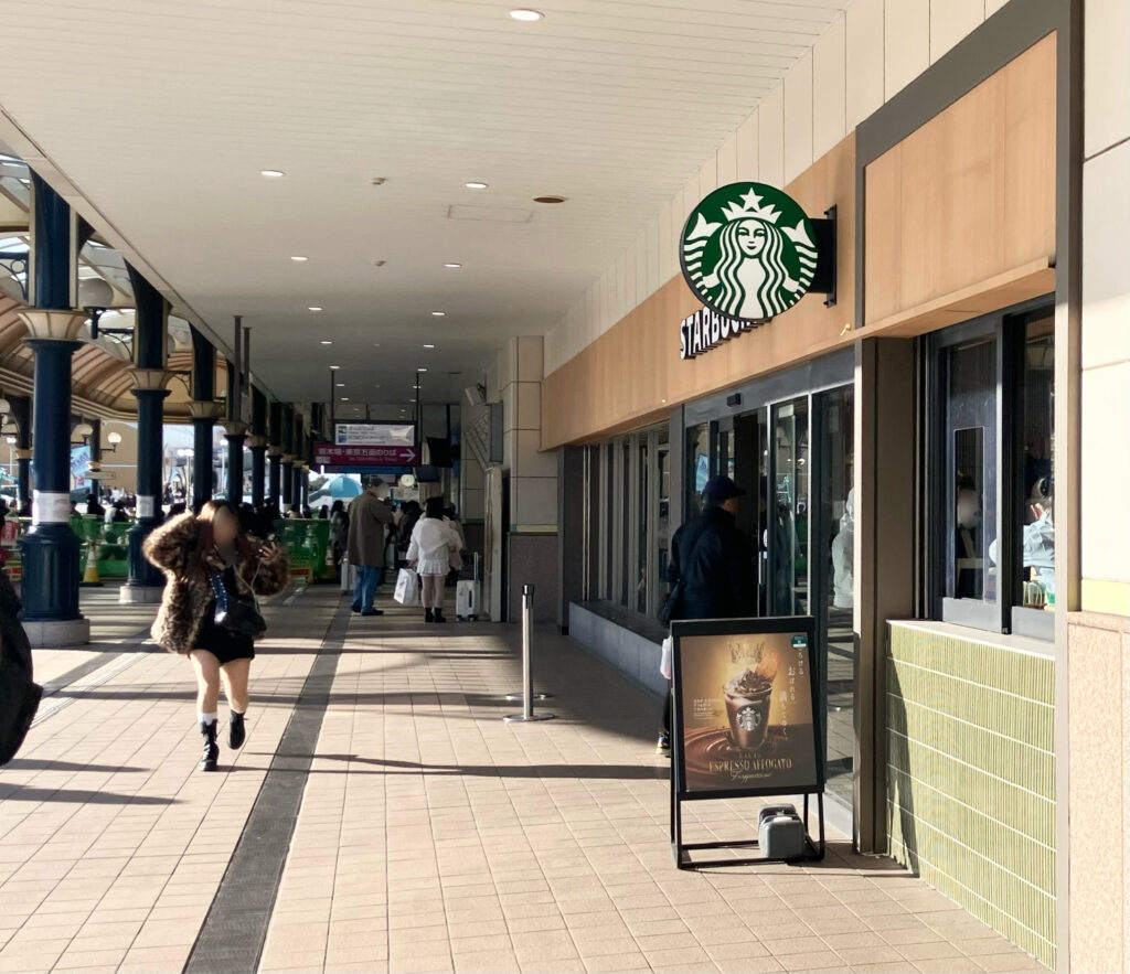 舞浜駅のとなりにスターバックスコーヒーがあります。寒い時期に温かいコーヒーとか飲みたくなりますよね。
