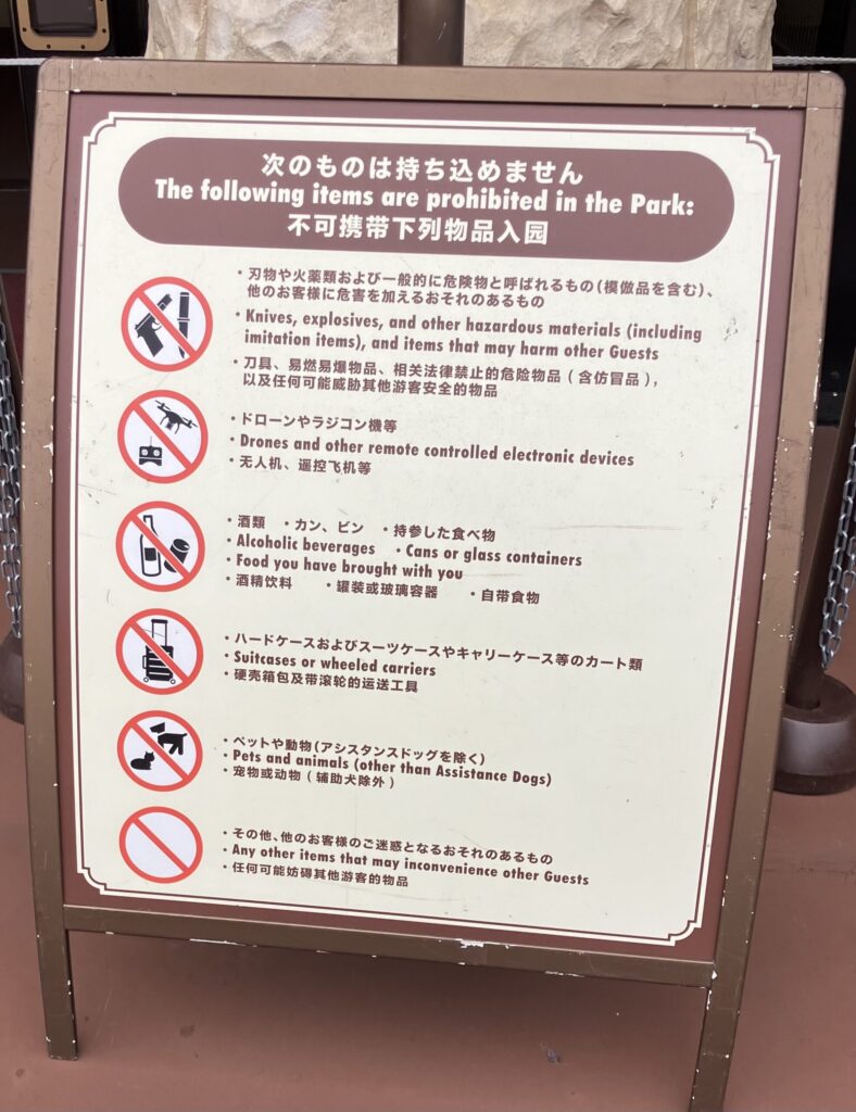 知らずに行くと入園前の手荷物検査で困ってしまうことも、、、