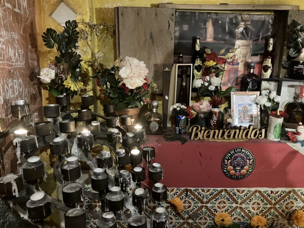 そこには、キャンドルや花、メキシコらしい装飾がたくさんありました。